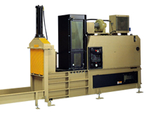スチール缶、アルミ缶、アルミ箔などをコンベヤまたは風送(エア搬送)にて投入し、連続的にブロック状に固めます。